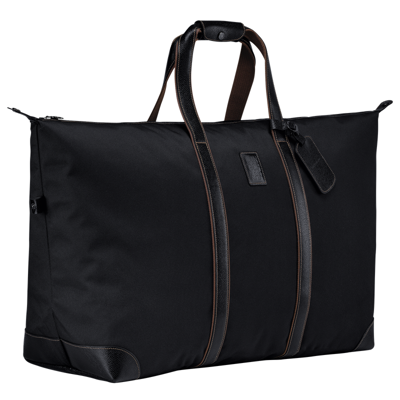 Reference : L1223080001,Dimensions : 25.6 in (L – measured at the base of the bag) x 18.5 in (H) x 9.4 in (W),Please refer to your airline’s size guide to ensure it complies with their standards.,Material : Recycled polyester canvas,,Metallic Hardware : Dark silver color,Trimming : Cowhide leather,Lining : Recycled polyester jersey,Weight : 1,580 g,Volume : 76 l,Closing : Zipped