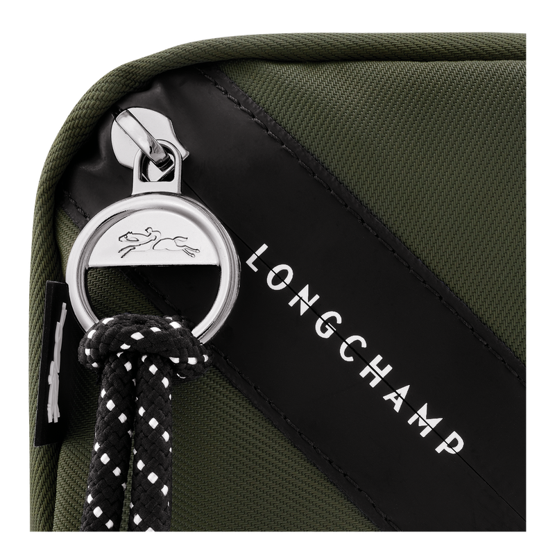 Reference : 30042HSR892,Dimensions : 8.7 in (L) x 3.9 in (H) x 3.9 in (W),Material : 100% polyamide canvas made with 100% recycled fibers,,Metallic Hardware : Silver color,Trimming : Cowhide leather,Lining : Recycled polyamide,Closing : Zipper