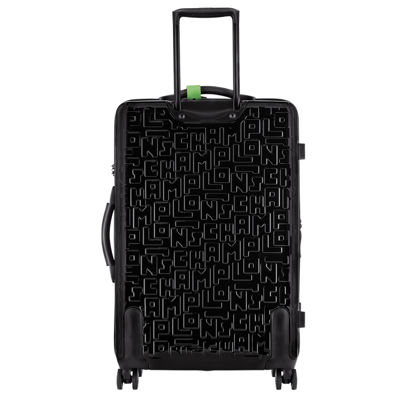 Reference : 24025423001,Dimensions : 18.5 in (L) x 28 in (H) x 10.6 in (W),Material : Polycarbonate,,Metallic Hardware : Silver color,Trimming : Cowhide leather,Lining : Polyester – Jacquard, Longchamp ribbons,Weight : 9.0389 lb,Minimum volume : 67 l,Maximum volume : 80 l,Closing : Zipper closure